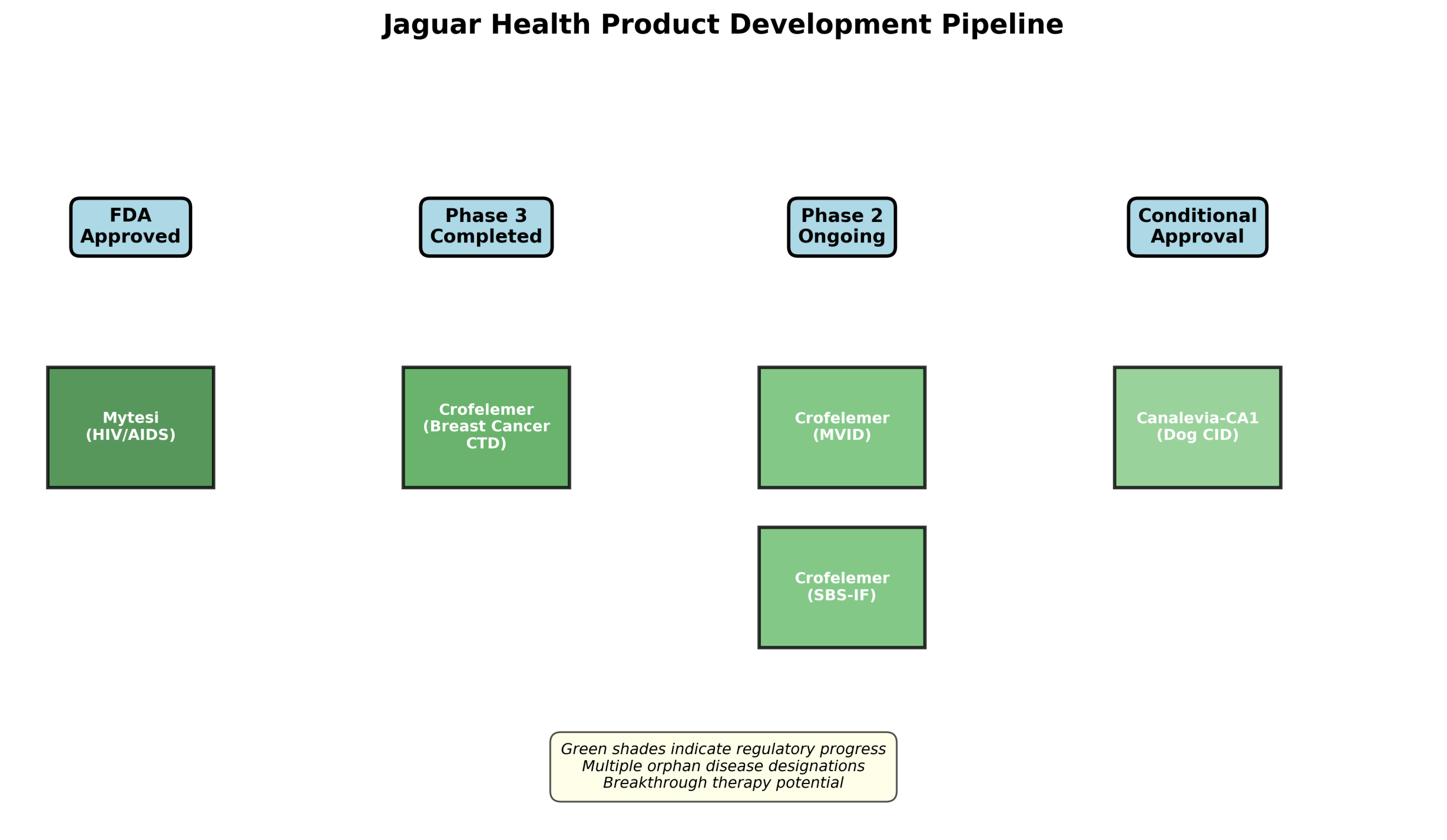 Through its Jaguar Animal Health tradename, the company markets Canalevia-CA1, which received conditional FDA approval for chemotherapy-induced diarrhea in dogs. This addresses a significant unmet need in veterinary oncology, with an estimated 11 million dogs suffering from general diarrhea annually in the U.S. alone.